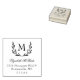 Élégant timbre d'adresse de retour avec une couronne de laurier autour d'un monogramme. Customisez ce produit en ajoutant votre nom, votre initiale et votre adresse. Belle police de script est utilisée pour votre nom.