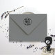 Timbre en caoutchouc pratique avec vos initiales et la date du mariage dans un style Art Déco rétro. Idéal pour do-it-yourself mariage Save the Date invitations. Ce design fonctionne le mieux sur les timbres carrés.