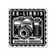 Un timbre Ex Libris avec un motif vintage reflex. Modifiez le nom pour personnaliser.