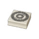 Un design en caoutchouc Ex Libris rond avec une bordure de soleil/starburst multi-rayons et centre avec un motif étoile 10 pointes. Modifiez le nom pour personnaliser.