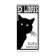 Un design d'Ex Libris avec un chat noir qui regarde autour d'un coin.