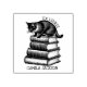 Ce tampon en caoutchouc "Ex Libris" comporte un chat vintage sur une pile de livres avec un nom personnalisé.