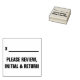 Ce cachet en caoutchouc comprend la demande "VEUILLEZ RÉVISER, INITIAL & RETOURN", ainsi qu'une ligne pour les initiales écrites. Il pourrait être utilisé par un enseignant, par exemple, pour demander à un parent ou à un tuteur d'examiner et de reconnaître la marque reçue par un enfant lors d'une affectation.
