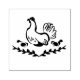 En nichant avec deux poussins jaunes. Le poulet est fait dans un style art linéaire, tandis que les petits ont été fait dans un style de timbre bloc. La paille a été remplacée par d'élégantes vignes noires