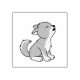 Le mignon loup caricaturé est assis sur ses hanches et hurle avec sa tête vers le haut.