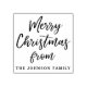 Timbre en caoutchouc avec le texte Joyeux Noël dans une police élégante et nom personnalisé.