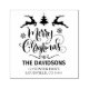 Moderne et élégant Joyeux Noël Vacances retour timbre d'adresse! Il présente un script moderne "Joyeux Noël" et des accents ornementaux de vacances hivernales. Utilisez l'outil Personnaliser pour ajouter vos informations, nom de famille.