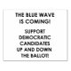 "LA VAGUE BLEUE VIENT. SOUTENIR LES CANDIDATS DÉMOCRATIQUES À LA HAUTEUR ET À LA BALLE !" par Monkey Business Graphic Design, 2024.