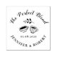 Timbre pour mariage avec de jolies illustrations de café entourées d'une police de script "le mélange parfait" et d'élégants monogrammes personnalisés.