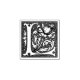 Lettre L première lettre décorative avec ornements fleuris, feuille et arrière - plan pointillé.