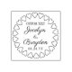 Ajoutez une touche de finition personnalisée aux invitations de mariage, aux annonces de fiançailles, aux notes de remerciement, enregistrez les cartes de date, ou aux faveurs de réception avec ce timbre en caoutchouc personnalisé. Tout le texte est facile à customiser ou à supprimer. Design comprend une couronne faite de coeurs élégants simples, écriture manuscrite calligraphie de couple nom, date, et tous les salutations au sommet. Ce timbre en caoutchouc romantique ajoute une touche élégante à votre fête spéciale. Parfait pour une douche nuptiale ou un anniversaire.