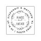 Ce timbre est un excellent choix pour tout couple qui cherche une touche personnelle à son courrier mariage. Ce design présente vos noms, date mariage et emplacement mariage dans un cercle autour de l'extérieur du timbre avec un cadre de feuilles rustiques dessinés à la main à l'intérieur entourant une typographie rustique qui dit "Toujours et toujours" dans un mélange de script rustique et de lettrage tout-casquette. Cliquez sur le bouton "personnaliser" en haut pour ajouter vos propres détails, puis assurez-vous de vérifier la meilleure taille pour vos besoins!