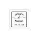 Un timbre en caoutchouc moderne avec une bordure carré avec des virages et une typographie simple, calligraphie moderne utilisée avec vos noms et votre date.