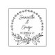 Ce timbre en caoutchouc "Save the Date" comporte un cadre fleuri avec des noms de couple et la date.