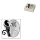 Une tourte noire à bec qui regarde par-dessus l'épaule dans un miroir. Le miroir a été fait dans un gris clair, donc un monogramme pourrait être plus facile à paraître.