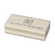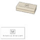 Timbre en caoutchouc monogramme moderne et minimal avec votre monogramme initial à l'intérieur d'une bordure carré et le nom ci-dessous dans une police sans serif moderne.