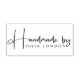 Ces élégants timbres en caoutchouc Simple Script Custom Créez vos propres estampes en caoutchouc "artisanal" pour vos créations artisanales. Les mots "Fabriqué à la main" sont imprimés dans un magnifique script de calligraphie manuscrite moderne. Niché en dessous de votre nom apparaît dans un futura sans serif intemporel et minimaliste. Parfait pour une petite entreprise pour personnaliser vos commandes, ou pour vos cadeaux do-it-yourself personnalisés.