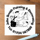 Timbre en caoutchouc du décorateur. Timbre de bureau pour un décorateur. L'illustration amusante d'une peinture et d'une caricature montre un homme avec la peinture brosse une échelle. Personnalisez-le avec votre choix de nom d'entreprise et de numéro de contact. Timbre d'encre pour une entreprise de décoration.
