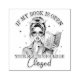 Illustration de charme montrant une femme avec son doigt sur ses lèvres tenant un livre ouvert. Le texte coloré dit : "Si mon livre est ouvert, votre bouche devrait être fermée". Ce design est disponible sur une grande variété de produits.