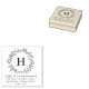 Un timbre d'adresse de retour simple et élégant, parfait pour ajouter une touche finale à votre correspondance. Cette conception comporte une couronne de laurier dessinée à la ligne avec des feuilles et des baies. Votre monogramme/initiale de famille est au centre et en dessous, vous avez le nom et l'adresse de votre famille. Ce timbre peut être utilisé toute l'année et fait un grand cadeau de maison ou de mariage.