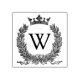 Timbre en caoutchouc élégant avec Monogramme vintage Lettre initiale W, couronne et couronne. Différentes tailles et modifications, personnalisation sont disponibles. Impression graphique ancienne, clipart de dessin rétro, vieille image pour l'art mail, scrapbooking, étiquette, autocollant etc