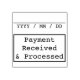 Cette conception simple et en caoutchouc comprend les messages "Paiement reçu et traité" et une ligne où une date de paiement peut être écrite. On pourrait peut-être l'utiliser pour indiquer qu'une facture ou une facture a été payée.