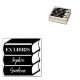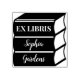 Un dessin d'ex-libris avec un motif d'une pile de trois livres. Ex Libris sur le livre le plus haut avec des prénoms et noms personnalisables sur les volumes inférieurs dans une police de caractères script stylisée. Le design peut également être personnalisé en plus, par exemple pour accueillir des noms plus longs, etc.