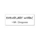 Ce design motivant de timbres en caoutchouc comprend le message positif "EXEMPLAIRE TRAVAIL!" et un nom de tuteur personnalisé. Il pourrait être utilisé par un enseignant, un éducateur ou un tuteur pour marquer les affectations, pour reconnaître qu'un étudiant a bien fait.