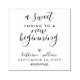 Timbre "Une fin douce à un nouveau début" pour les sacs de faveur de mariage. Le design est composé d'un mélange de calligraphie chic et de style moderne avec un petit coeur mignon. Personnalisez le design en changeant les noms, la date et un hashtag. Des produits correspondants comme des sacs de faveur, des étiquettes de vin, etc sont également disponibles dans notre magasin.