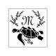 Tortue de mer nageant dans un style tribal silhouette. Alors que l'original était une base d'une tortue verte, la forme des segments qui s'inclinent pour être tordus et tournés. Au-dessus de la coquille à gauche et à droite est l'algue noire laissant de l'espace pour le texte, par défaut est une lettre "M" m est courte pour monogramme. Et sous la tortue se trouvent des tourbillons d'eau.