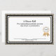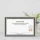 Dekoratives Bräunungszertifikat, Schwarz-Weiß-Auszeichnung, mit Grafik eines goldenen Farbbands und individuellem Text. Personalisieren Sie den Text und fügen Sie dem Anzug Ihrer Preisverleihung sogar noch mehr Text hinzu.