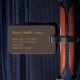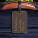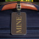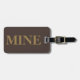 Gepäckanhänger mit Namen und Adresse mit einem bräunlichen "MINE" auf brauner Hintergrundfarbe. Personalisieren Sie Ihre Namen- und Adressinformationen mithilfe der einfachen Vorlagen.