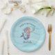 Niedliche lila Meerjungfrau und blaue Wellen schmücken diese Teller aus Papier. Passen Sie mit dem Namen Ihres Kindes auf!