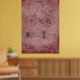 Eine alte Erfindung eines Tandem-Fahrrads, das 1890 patentiert wurde und für Wandkunst auf rustikaler Rose im Vintagen Stil entworfen wurde.
