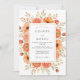 This watercolor design showcases a warm palette of burnt orange and soft peach tones. Hand-painted poppies and ranunculus blooms create a lush border around the central area. Delicate tan foliage adds a touch of rustic elegance, making it ideal for a romantic seasonal event. The artwork evokes a sense of natural beauty and timeless charm.