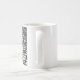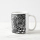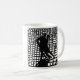 Weiße Keramik-Tasse, welche die Kunst von Jon Ott, einen Mann und eine Frau darstellend kennzeichnet, silhouettiert und tanzen den Tango auf einem Kopfsteinweg. Die ursprüngliche Kunst war unter Verwendung des printmaking linocut erfolgt.