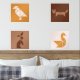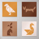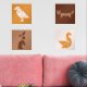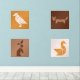 Galerisches Wandkunst-Set mit 4 Kunstdrucken mit 4 Tangram Tieren: Krähe, Fuchs, Kaninchen und Schwan.