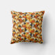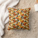 Kissen mit quadratischen Kissen mit Tangramm-Fliesen, ein Muster geometrischer Formen in leuchtend warmen Farben. Rot, braun, orange, gelb, weiß.