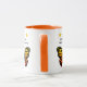 5-Sterne-Bewertung und Ihre Texterfassung. Oder verwenden Sie den Standard "Excellent tanttie. Ich empfehle Ihnen". Das Design hat eine hübsche Schmetterlingsfarbe in Orange und Gelb, um den Spaß zu erhöhen - oder man kann das ändern, indem man sein eigenes Foto hochlädt. Das gleiche Design und der gleiche Text auf der Vorder- und Rückseite der Tasse.