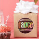 Farbenfrohe Grafik, leicht Retro, leicht bedrückt, ein DANCE Design für das 21. Jahrhundert. Tanzknöpfe und Aufkleber machen jedem Tänzer ein preiswertes Geschenk.