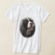 Ein T - Shirt, der ein ursprüngliches Foto einer Leber und weißen des englischer SpringerSpaniel, mit Text auf der Rückseite kennzeichnet; "Tanzt mit Schüssen".