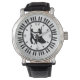 Uhr, Vintage Männeruhr mit schwarzem Lederarmband