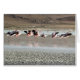 Die Tanzen-Flamingos - rot, rosa, schwarz, weiß auf Eis (gefrorenes Wasser) - fotografieren genommen nahe den Salz-Ebenen von Bolivien, Südamerika.