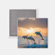 Tanzen in der Dämmerung: Drei Delphine springen Magnet