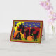 Eine illustrierte Halloween-Karte mit den schwarzen Katzen, die mit Sternen tanzen! Kürbise, Mond und eine Spinne auch, schließen die Halloween-Katze ab!