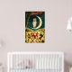 Ein schönes Vintage Poster mit Teufel, Hexe und Kürbischarakter, die unter dem Mond tanzen und Eule.