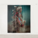 Verwandeln Sie Ihren Raum mit kühner Bewegung, Farbe und kulturell inspirierter Schönheit durch diesen Native American Tänzer Teppich. Mit einer auffallenden Frau in traditioneller Kleidung, die in einer dramatischen und ausdrucksstarken Pose festgehalten ist, bringt dieses Design Energie, Stärke und künstlerische Eleganz in jedes Schlafzimmer, Wohnzimmer, Studentenwohnheim, Atelier oder kreativen Raum. Reiche rote und türkisfarbene Töne, fließende Texturen und eine starke südwestliche Ästhetik machen diesen Wandteppich zu einem atemberaubenden Statement für Boho-, Rustik- und Kunstinterieurs. Eine schöne Wahl für jeden, der ausdrucksstarke Porträtkunst und bedeutungsvolle Dekoration mit visueller Wirkung liebt.