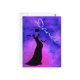 Delikate Frauentänzerin in Silhouette auf einem lila und rosa strukturierten Aquarellhintergrund.