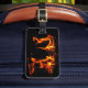 Anpassen Sie den Text auf der Rückseite dieses Gepäckanhängers einfach an. Es zeigt die Feuerkraft in einem Holzofen. Die Flammen in Orange, Gold und Gelb erscheinen als fröhliche Tanzfiguren. Sie sind von einem schwarzen Hintergrund abgeschnitten. Lassen Sie Ihre Koffer auf einem Flughafenkarussell mit einzigartigen Tag-Designs auffallen!