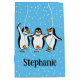 Tanzpinguine Design Mediu Geschenktasche mit anpassbarer Hintergrundfarbe und Text auf beiden Seiten.
